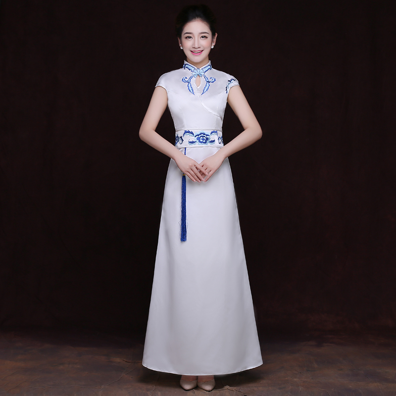 奧運旗袍禮儀服裝長款青花瓷服裝