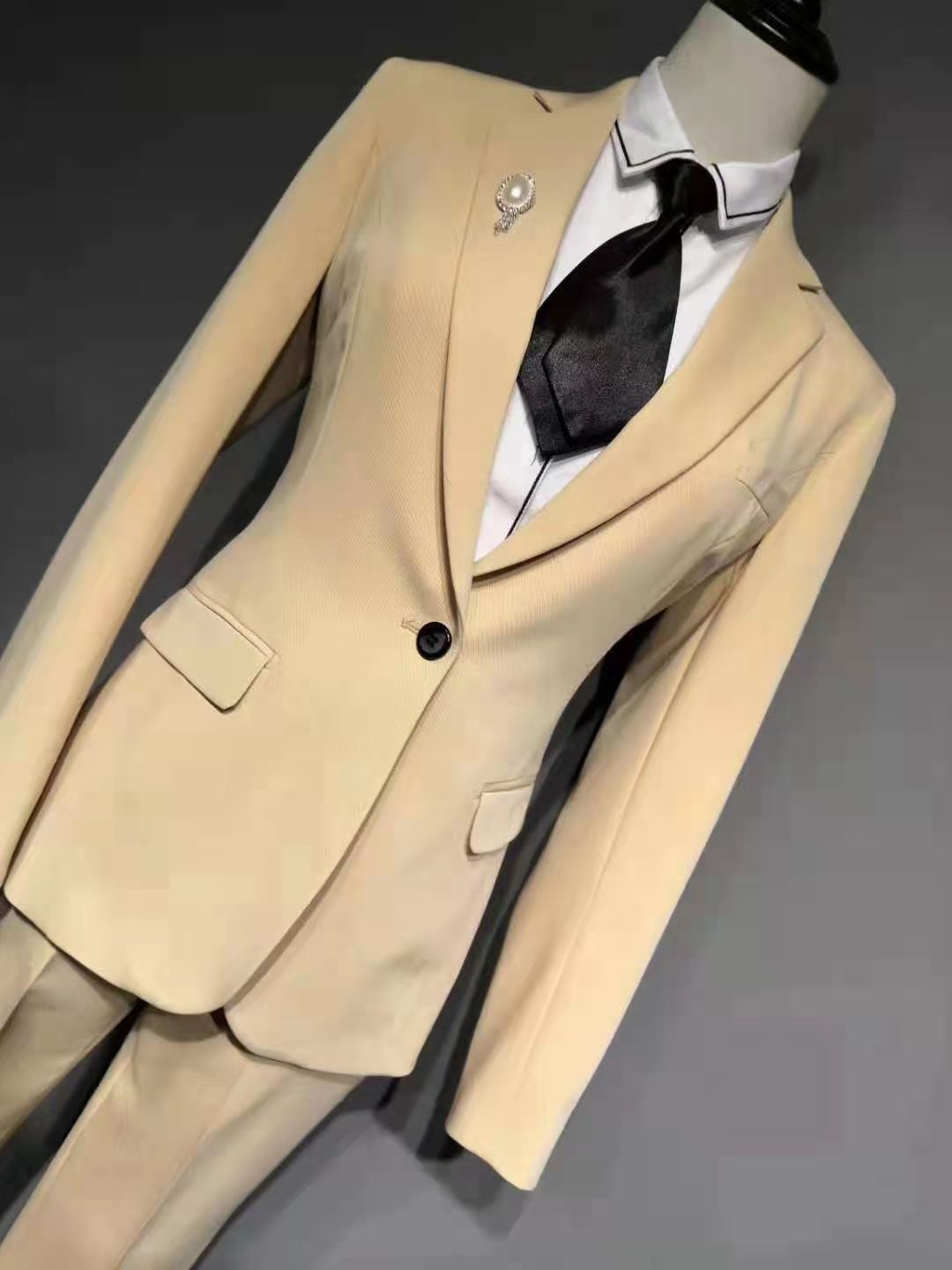 女士主持人禮服西裝職業(yè)裝彩色西裝杏色西裝面試西裝