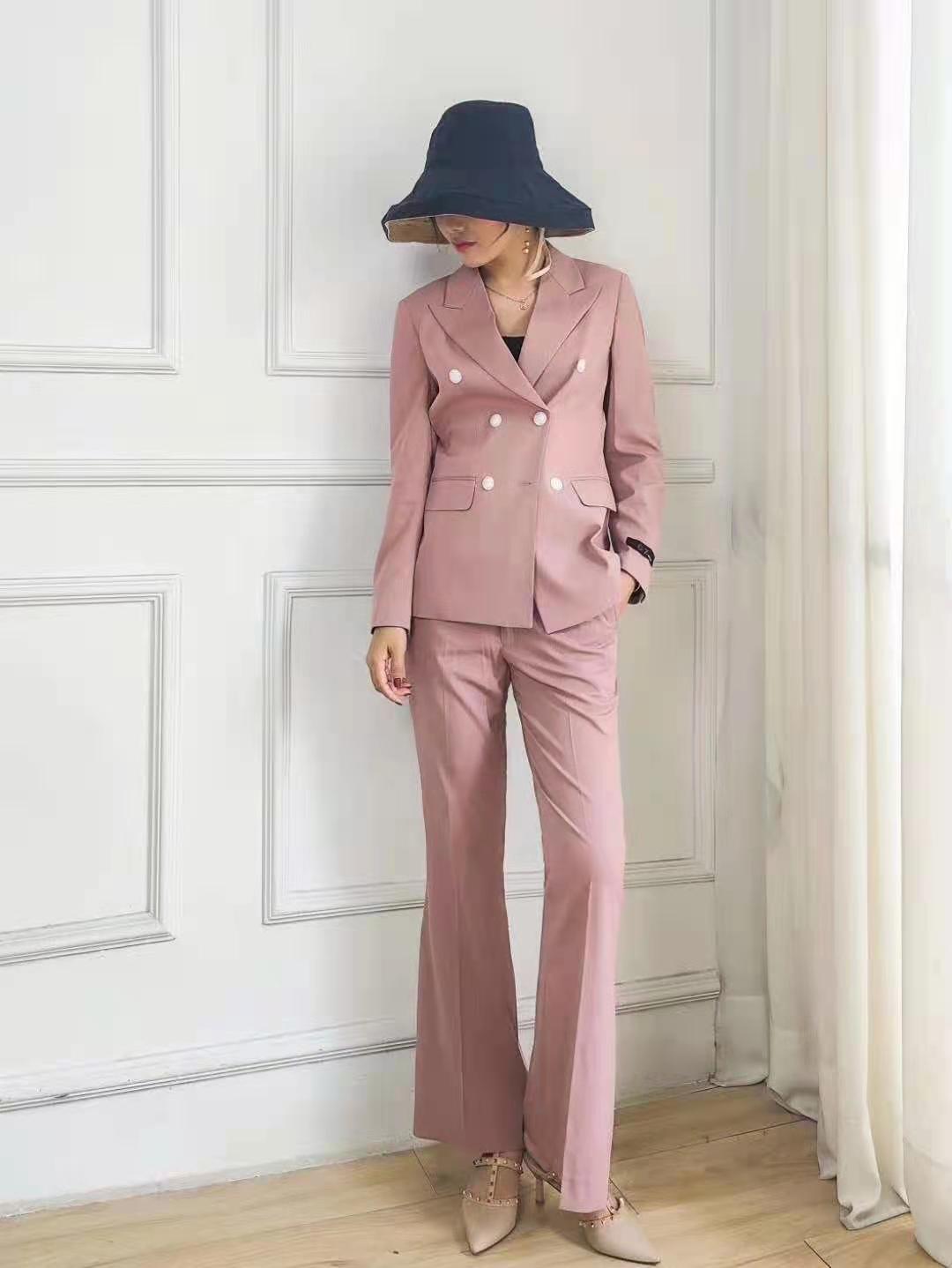 女士主持人禮服西裝職業(yè)裝彩色西裝淺粉色