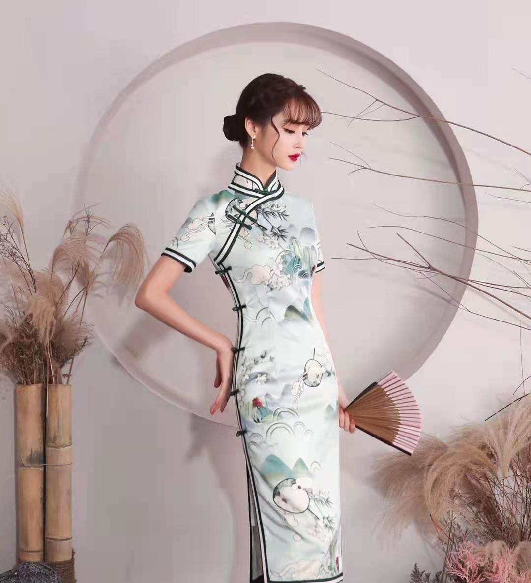 女士旗袍素雅旗袍仿真絲款旗袍